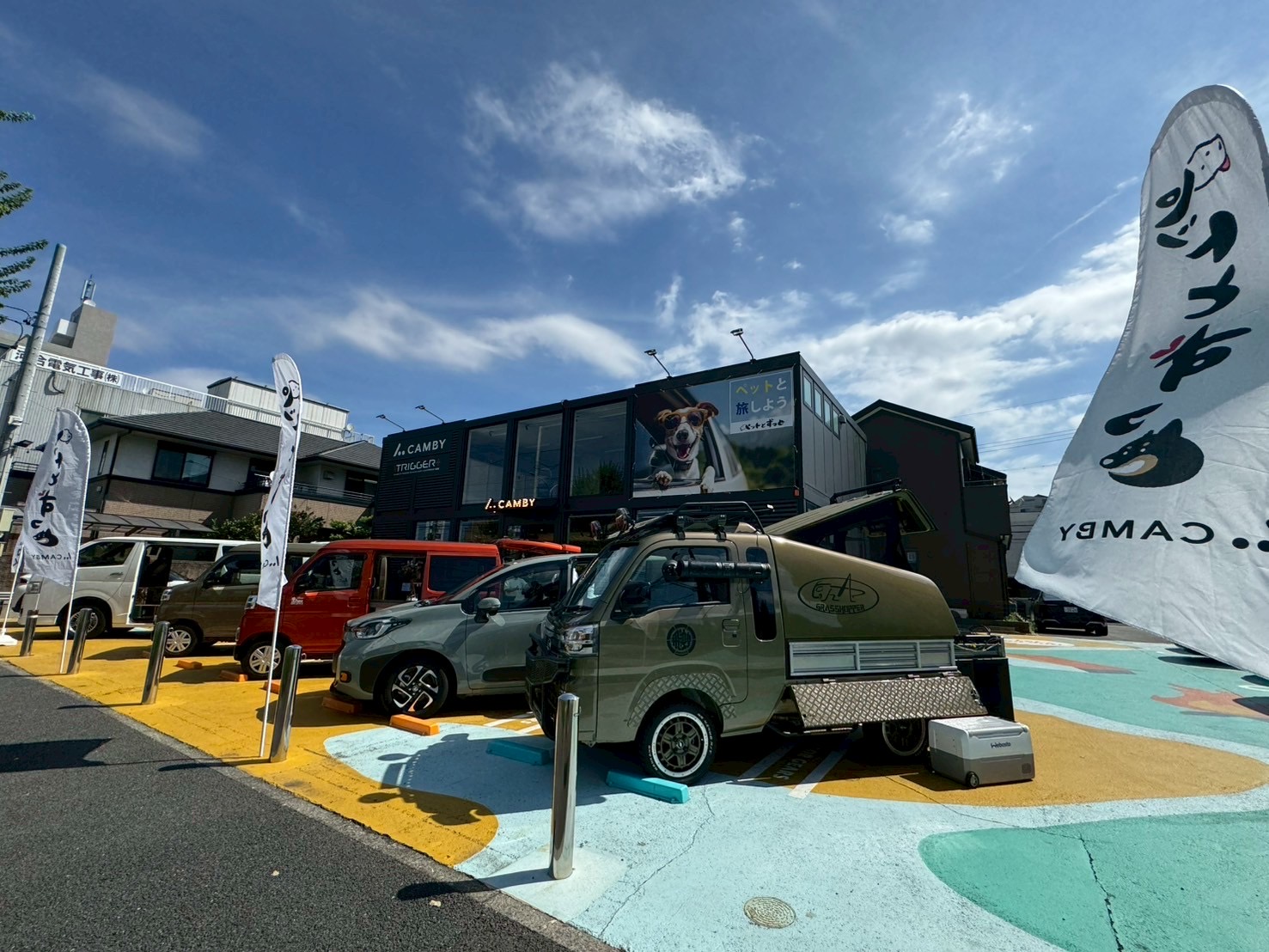 CAMBYはグループ会社として、東海エリアを中心に名古屋営業所として、デモ車輛の展示、販売、試乗会の実施などを行っています。
