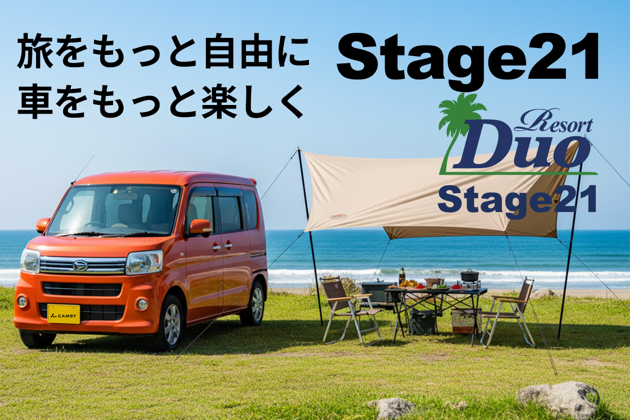 必要な装備を備えつつ価格を抑えた仕様が魅力のSTAGE21。CAMBYは西日本エリアを中心に「STAGE21 名古屋営業所」として、車輛の展示の他、故障や修理のご相談なども行っています。