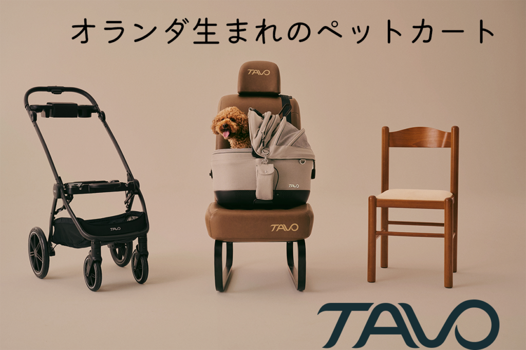 オランダで生まれたペットカート「TAVO」は人間のチャイルドシートと同じ基準で作られたペットカートです。またペットフード先進国のニュージーランド産の材料を使ったオーガニックなペットフード。