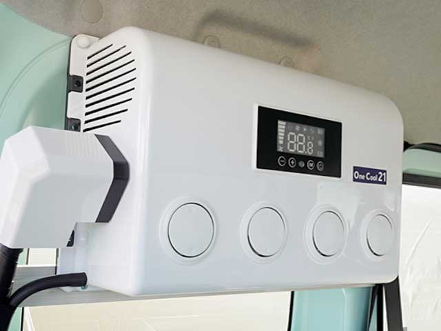 One Cool 21を標準装備!小型で冷房能力のある12V仕様の車専用クーラーエアコンです。サブバッテリーからの給電で駆動するので、エンジンを停止しても使用することができます。