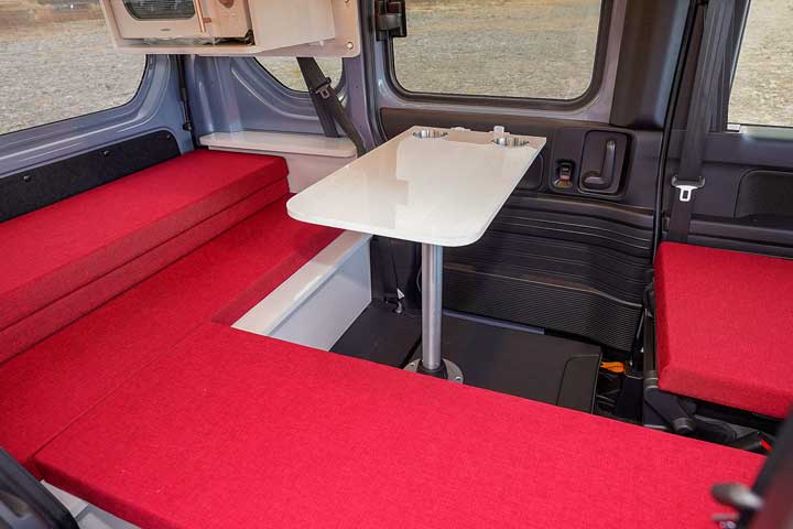 ランチタイムにエンジンをかけずに、バッテリーで動くクーラーで環境に優しい昼休みを送ったり、工事現場の休憩時間にクーラーをつけて休憩を取ったり、子供の部活のお迎えの待ち時間にエンジンを切って、環境に、地球に優しいSDG’sを実践しませんか?カフェラテ2は対座シートを採用し、2人までの就寝が可能になりました。