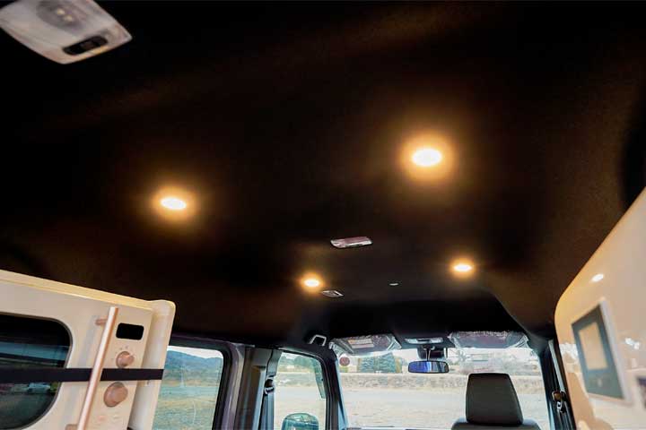 サイドパネル、リアパネル内、天井トリム内と床面に、 断熱材を施工しています。
